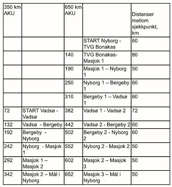 Sjekkpunkter Bergebyløpet 650: